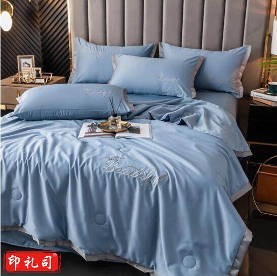 南极人 家纺水洗冰丝夏凉被 床上用品 浅蓝(冰丝皇冠刺绣)150*200cm(单夏被)