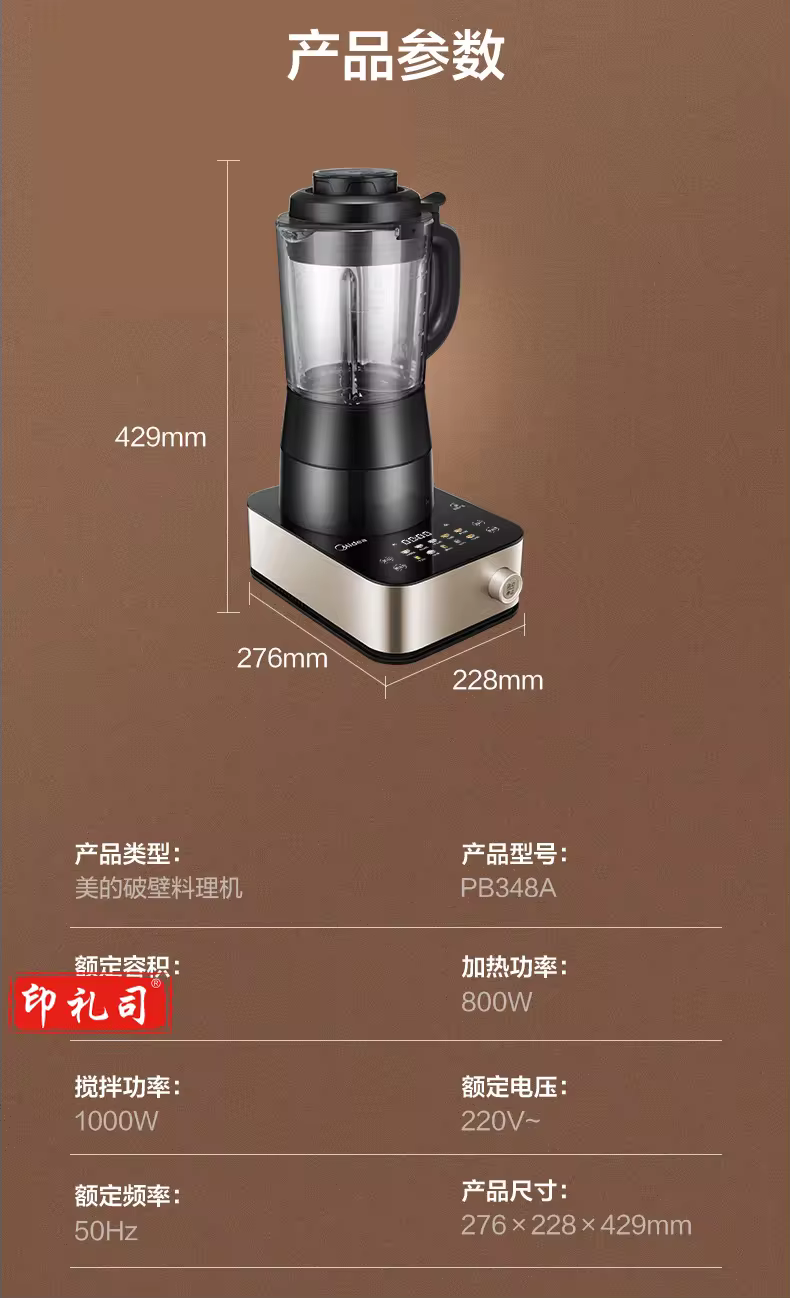 美的PB348A 破壁机 多功能破壁料理机 双重降噪wifi智联 一机多用