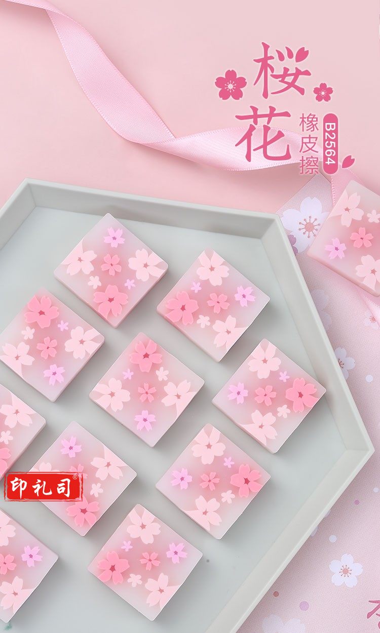 齐心B2564 樱花方形橡皮擦 30块/盒(单位:块)