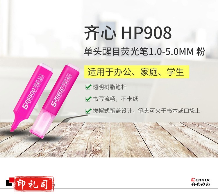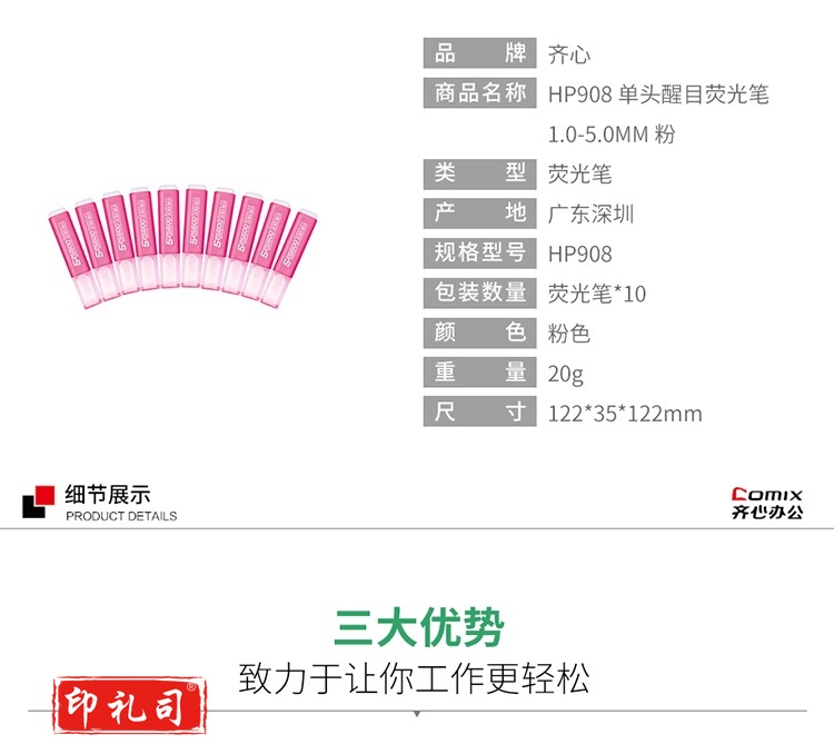 齐心(Comix) HP908 持久醒目记号笔 颜色笔 粉色 10支装