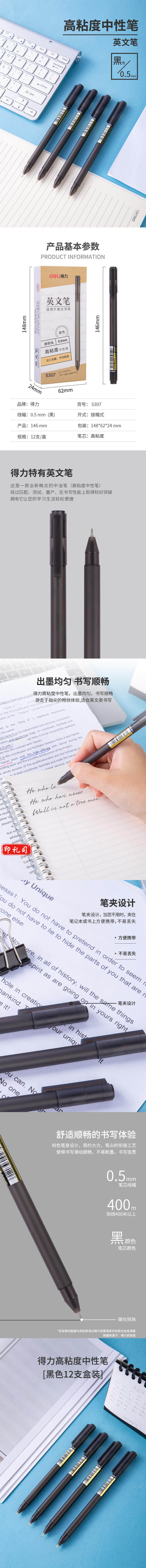 得力S307高粘度中性笔0.5mm迷你头(黑)(支)