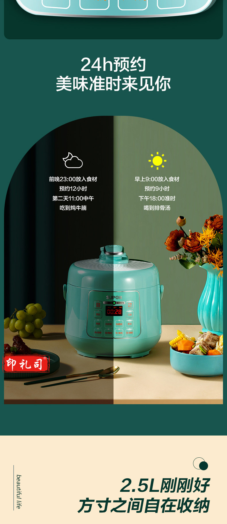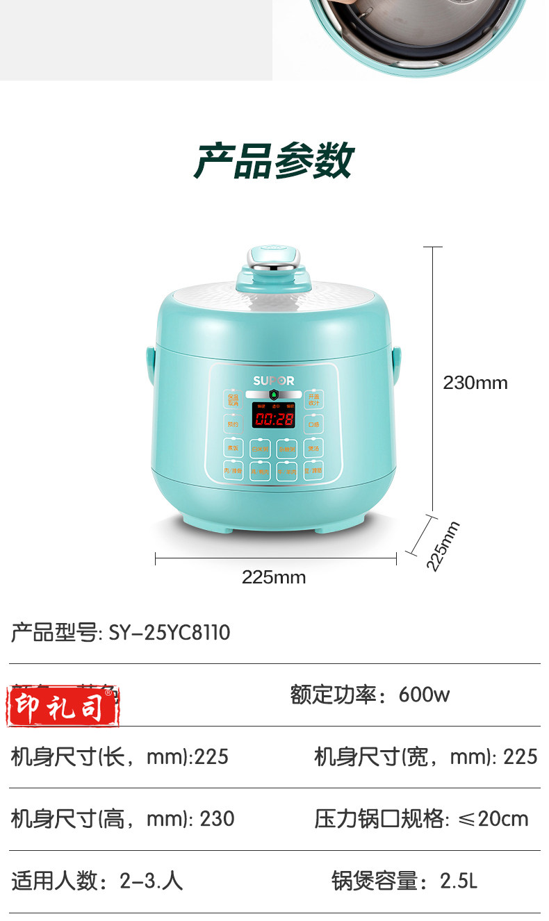苏泊尔SY-25YC8110 电压力锅 一键排气 开盖收汁 智能迷你2.5L