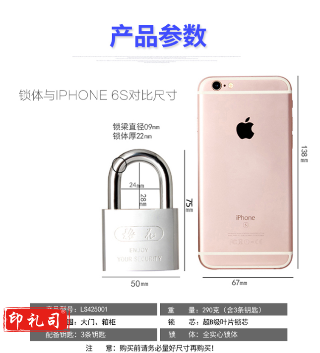 LS2950 方形挂锁 防盗叶片锁芯大门家用锁具 50MM防水防锈锁芯 仓库商铺门锁