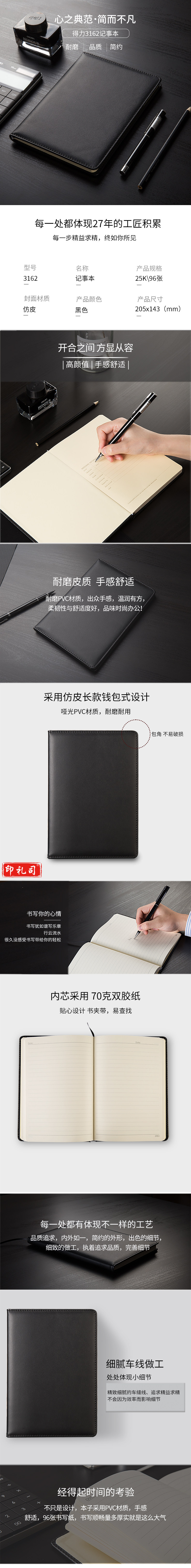 得力(deli)3162高级记事本(黑)-96张-25K(本)