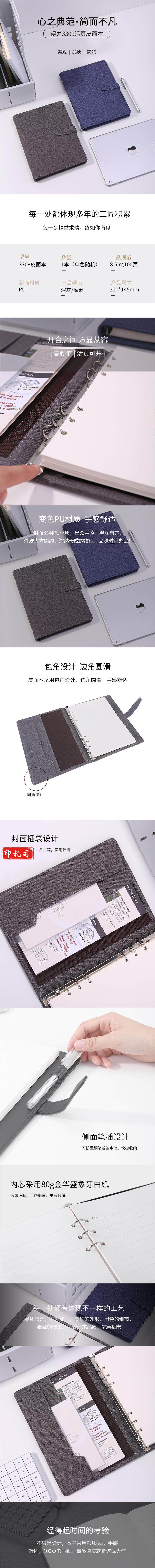 得力3309活页皮面本8.5in-210mm*145mm-100张(混)(本)