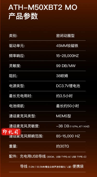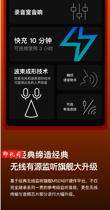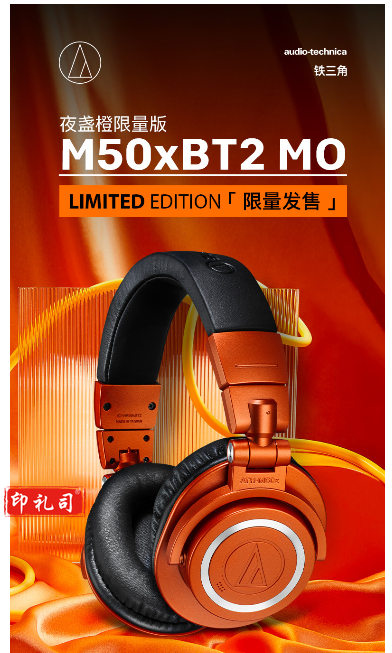 铁三角ATH-M50xBT无线蓝牙运动降噪hifi音乐头戴式电脑耳机耳麦苹果华为小米手机 限量版夜盏橙