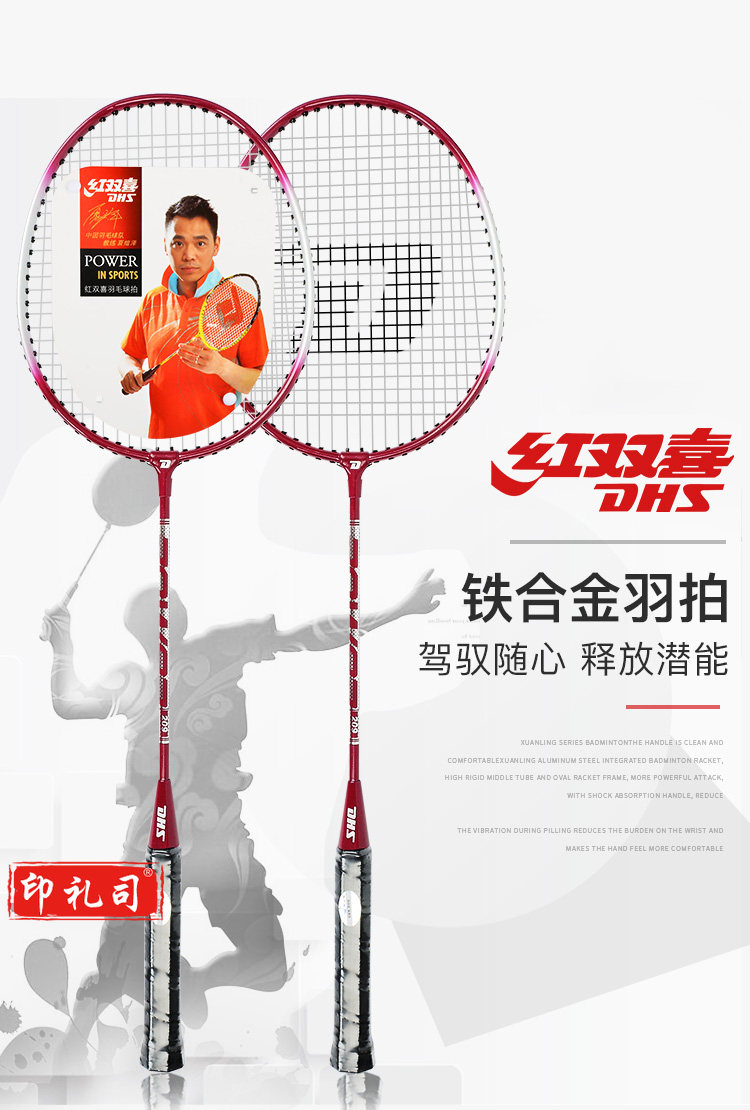 红双喜DHS209羽毛球拍对拍2支装实惠训练练习羽拍双拍(含手胶羽毛球)