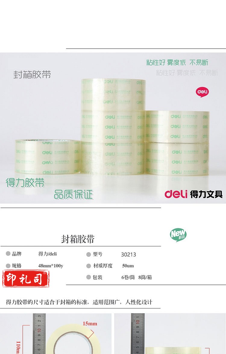 得力 30213 普透封箱胶带 48mmx100y 6卷/筒 (单位:筒)