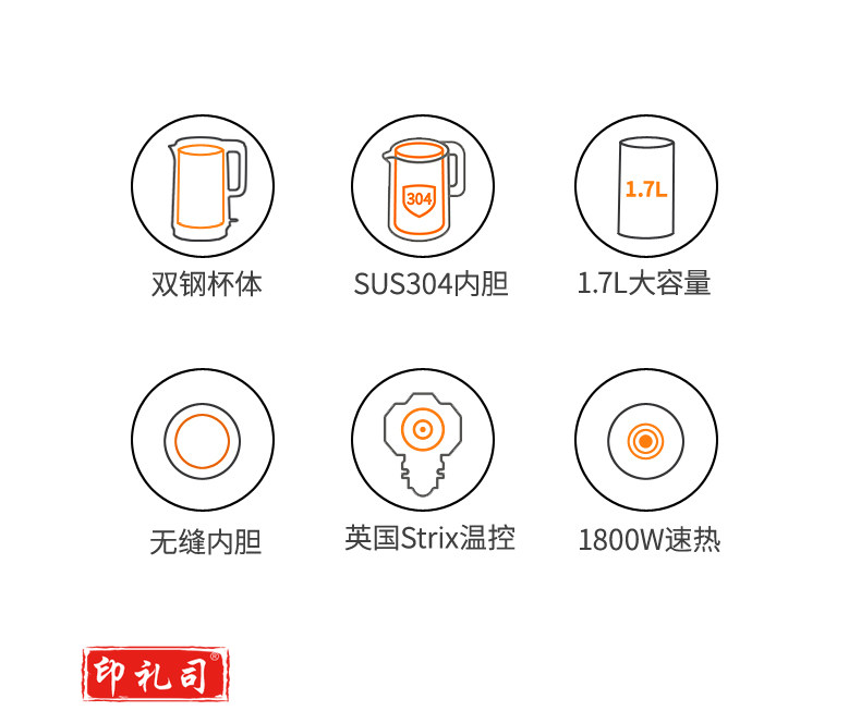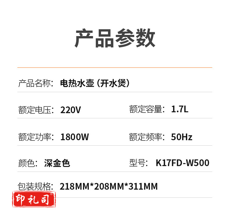 九阳(Joyoung)K17FD-W500 1.7L无缝内胆双层锁温防烫 家用电热水壶