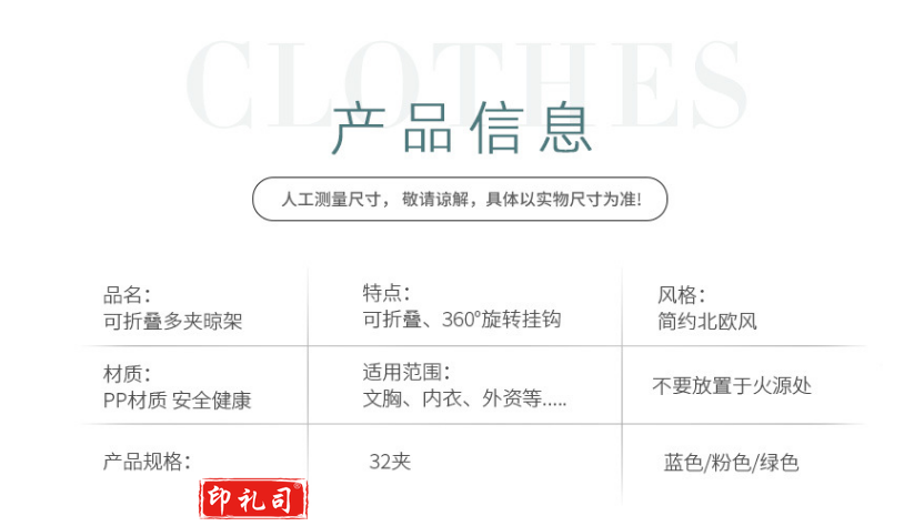洁丽雅(Grace)衣架32夹JA0614可折叠多功能衣架内衣袜子夹子衣架