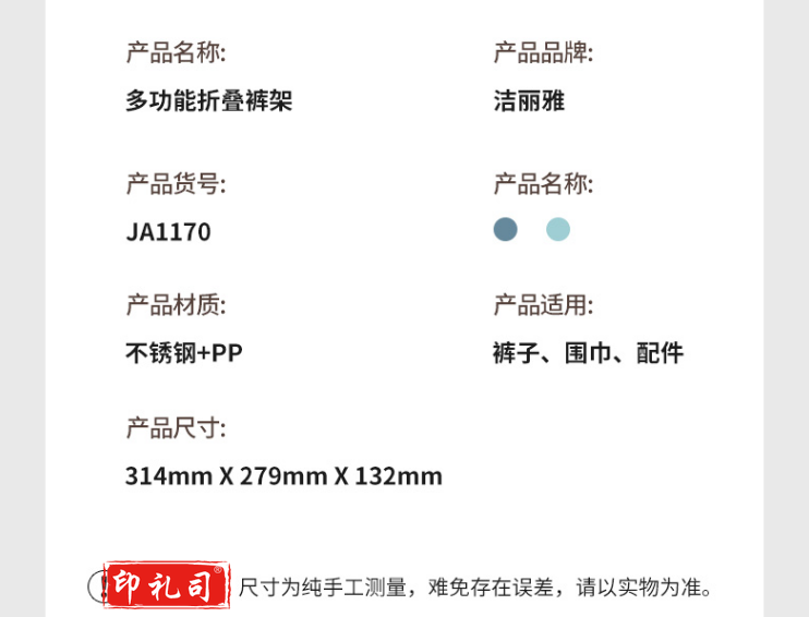 洁丽雅(Grace)裤架JA1170可伸缩折叠衣架