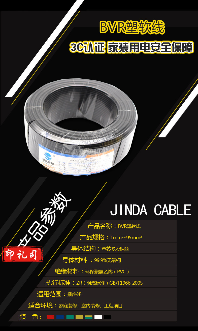 津达电缆 BVR-绿色6平方 软塑铜线 100米/盘