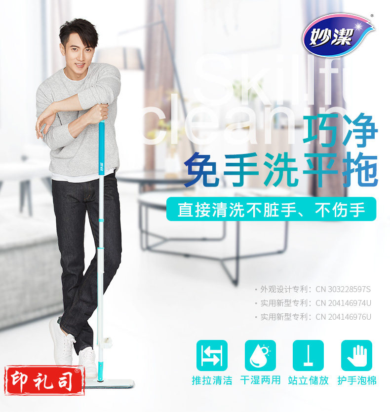 妙洁 巧净免手洗平板拖把 木地板瓷砖干湿两用 共2块原装拖布