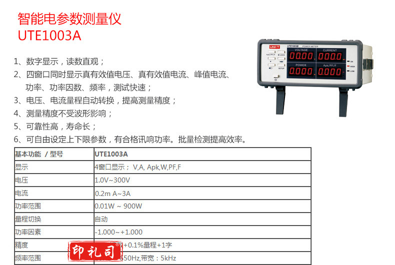 优利德 UTE1003A 智能电参数测试仪 单三相电力参数测量仪
