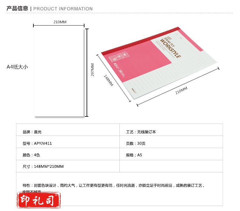 晨光(M&G)A5无线装订本30页商务必备APYJV411 一包10本装
