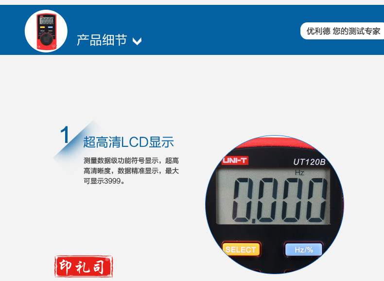 优利德 UT120A 便携式数字万用表 卡片式万用表 电阻 频率 二极管 自动关机