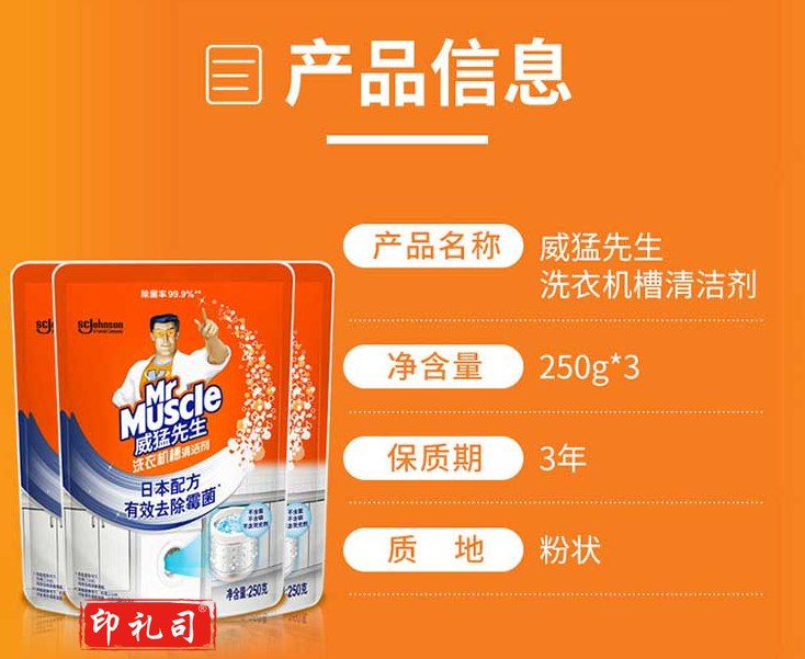 威猛先生(Mr Muscle)洗衣机槽清洁剂 250g*3包滚筒洗衣机清洗剂 除霉菌 去除异味