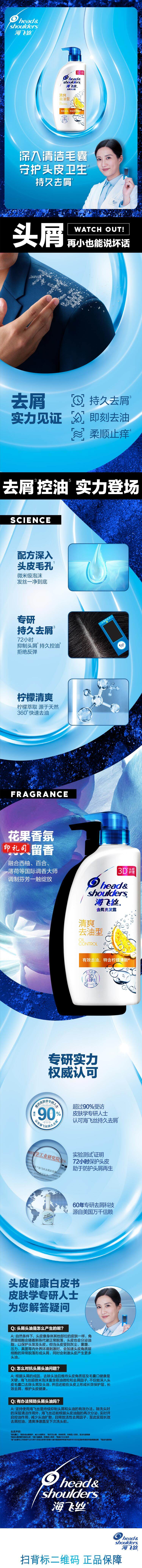 海飞丝 750ml洗发水 持久去屑 清洁止痒 清爽控油 柠檬香